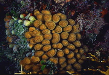 There are two species in Bermuda, M. mirabilis seen here and M. decactis which has stubby, more club-like branches of the colony. The polyps are small, about 2 mm, and they are open and feeding during the day in contrast to many corals which open only at night. This genus is mostly found in the inshore waters rather than on the outer reefs and it prefers vertical surfaces rather than directly sitting on top of the reef.