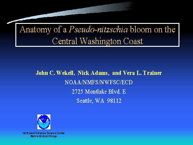This will be a discussion of a bloom of Pseudo-nitzschia that was observed on the Washington Coast in the summer and fall of the 1998. But before beginning this discussion, a little background on the series of events and circumstances that caused us to observe this particular bloom.
