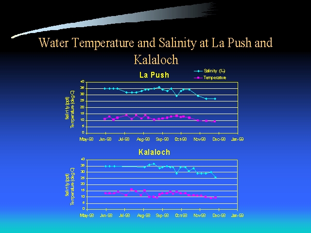 Slide 12. WATER TEMPERATURE AND SALINITY AT LA PUSH AND KALALOCH