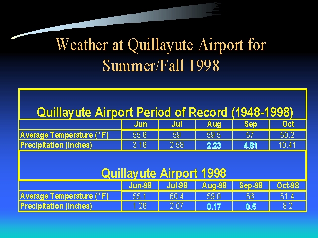 13. WEATHER AT QUILLAYUTE AIRPORT FOR SUMMER/FALL 1998